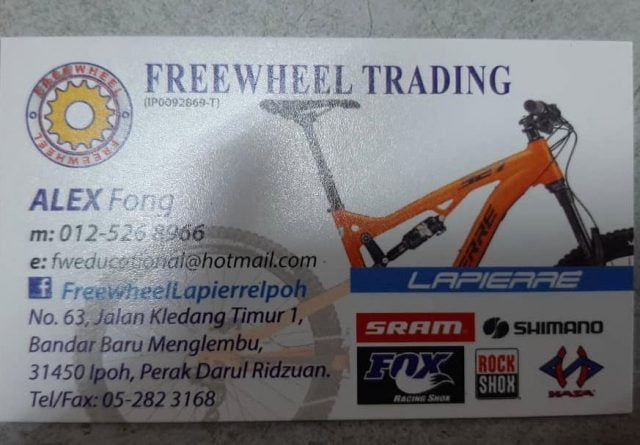 slmbicycle2020-12-04T05:34:29+08:00 Dealer Description Vittoria Freewheel Bicycle Shop Facebook Address No.63.jalan Kledang Timur 1, Bandar Baru Menglembu, Ipoh 31450, Perak. Malaysia. Phone 05-2823168 / 012-526 8966 Business Hours Monday – Saturday 10am – 7pm Sunday Closed Dealer Details Skills: PerakVittoria Location: Perak Share Facebook Email