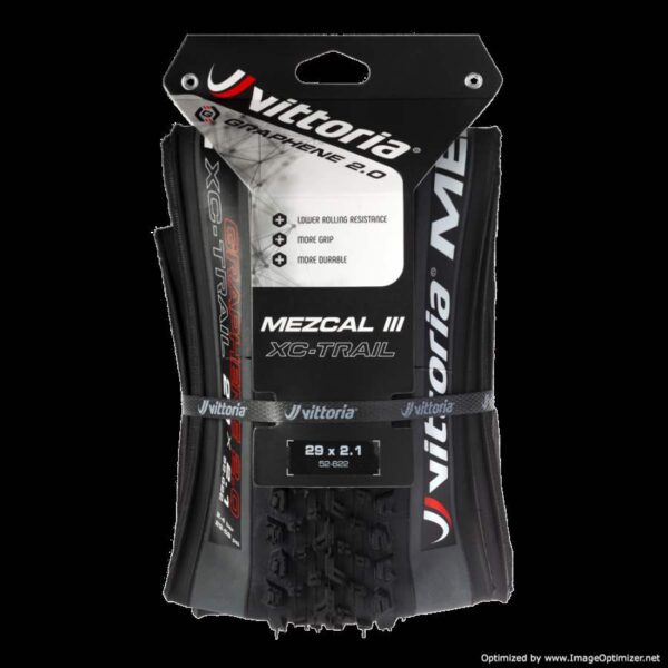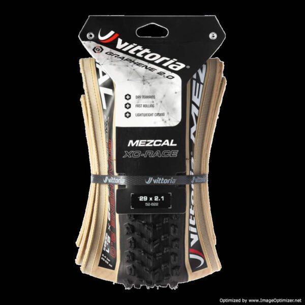 The Vittoria Mezcal 3 mountain bike tyre is the versatile all-rounder that gets you to the podium, time after time. Ride a combination of terrain? This is the choice of the pros. The Mezcal features a unique low-profile tread that is tightly spaced in the center, for low rolling resistance and durability. Countless effective edges work together to grip on a variety of terrain, while directional siping on each knob make traction in the roots and rocks. The best tires are built with the best casing and compound, and the Mezcal TNT is no exception. Using the proprietary Graphene enhanced 4C compound, the Mezcal attains the holy grail of XC tires; grip, durability, and low weight.